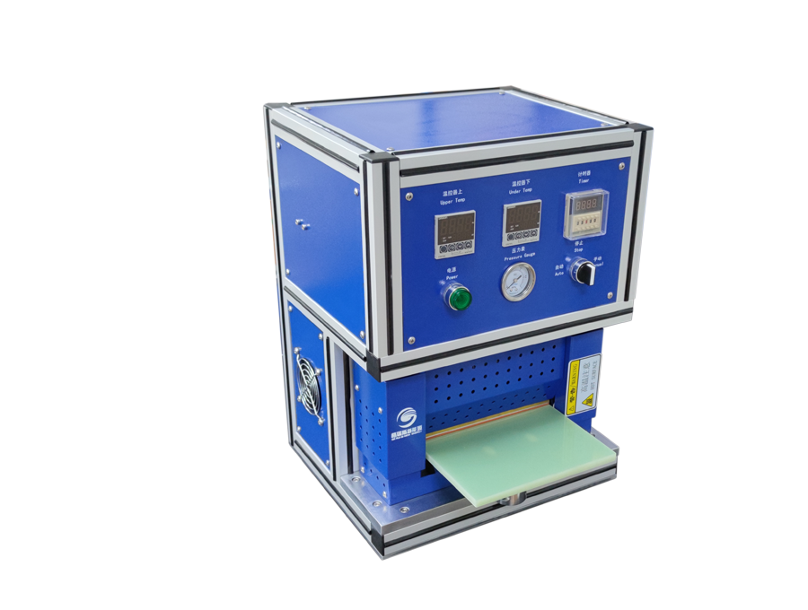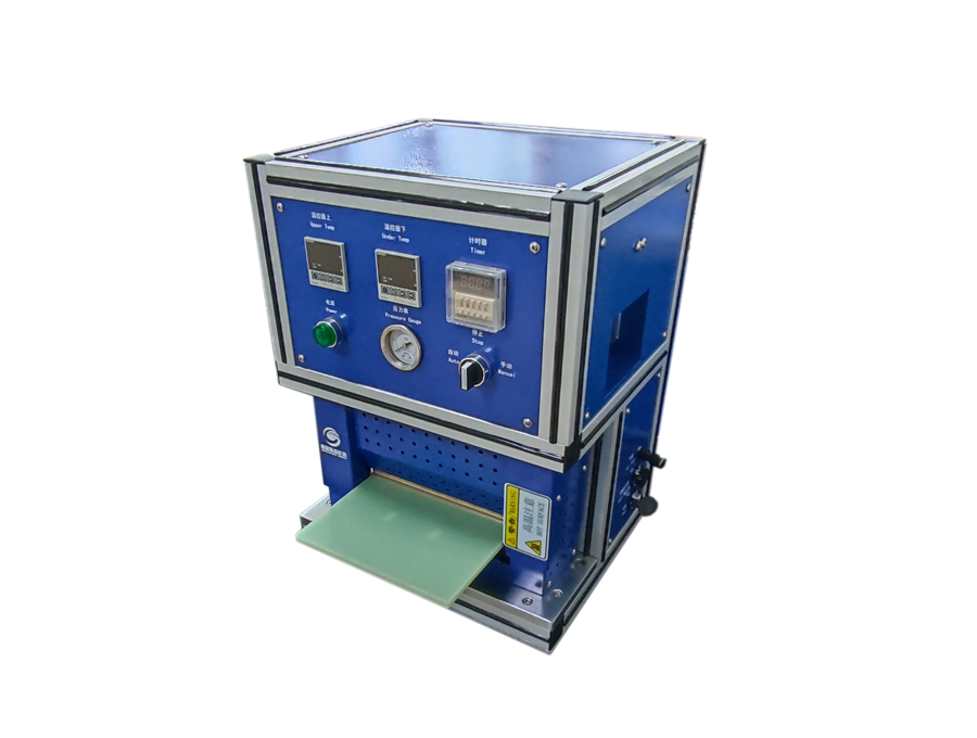 当温度参数达到设定值时,手持电芯将电芯的封边置于封头之下对正封边位,脚踏开关起动,气缸带动上热封头下压封装,将铝塑膜加热变软接近熔融状态压合融接完成热封压边动作,手工将电芯取出完成。
